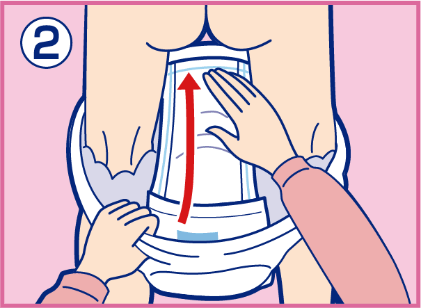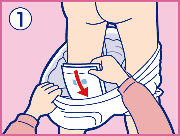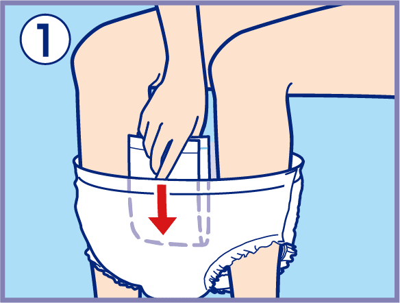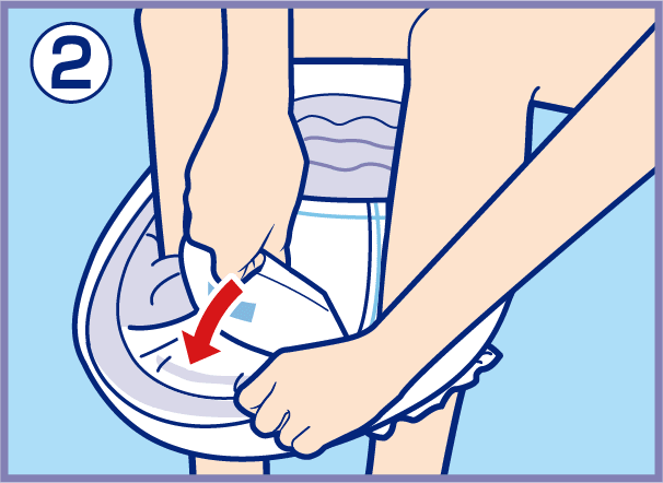 2. Firmly press the front end of the pad onto the paper pants.