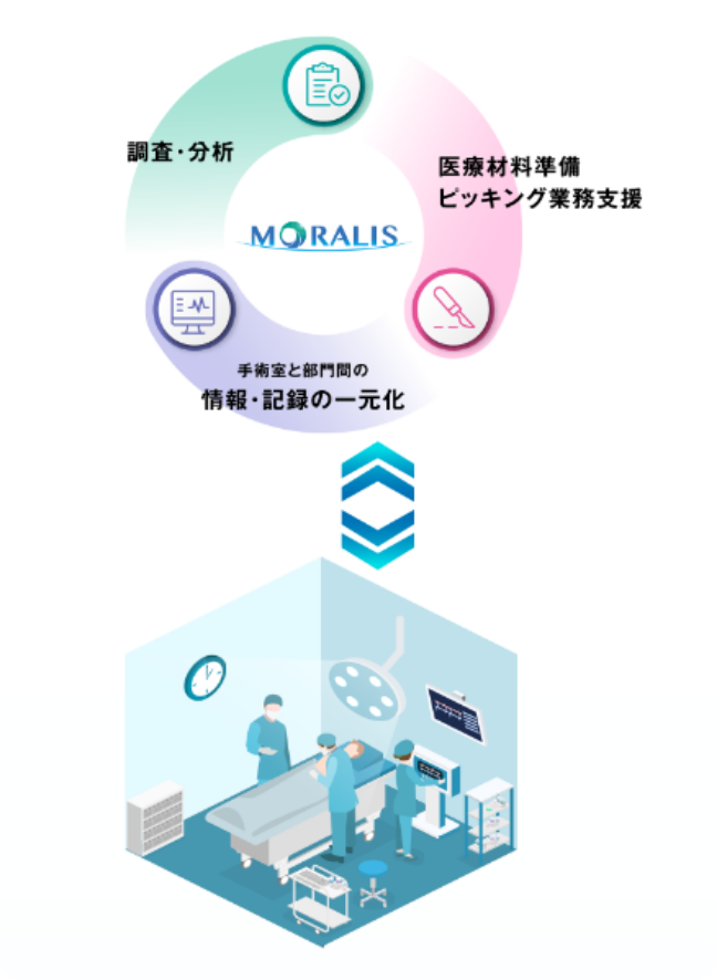 働きがいのある職場と効果的な手術室運用をめざし、手術データの調査・分析、医療材料のピッキング支援ツールの提供、手術関連情報のデータ一元化などを可能にするサービスである「モラリス」を通じて、病院ごとの問題・課題にあった最適なメニューをご提案しています。