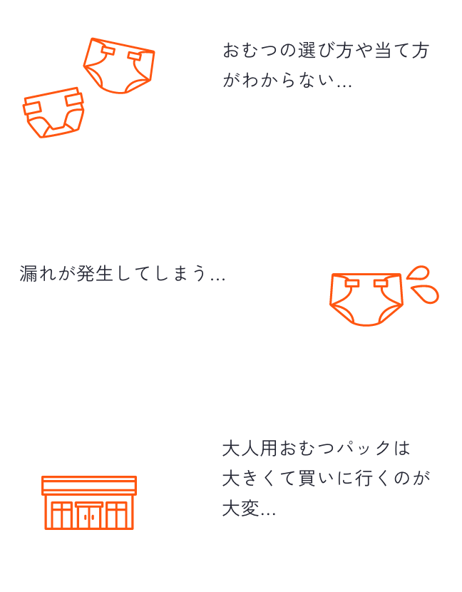 近年は介護が必要な状態になっても、ご自宅で生活する方も増えていますが、在宅介護ならではのおむつのお悩みとして、以下のようなお声も聞かれます。