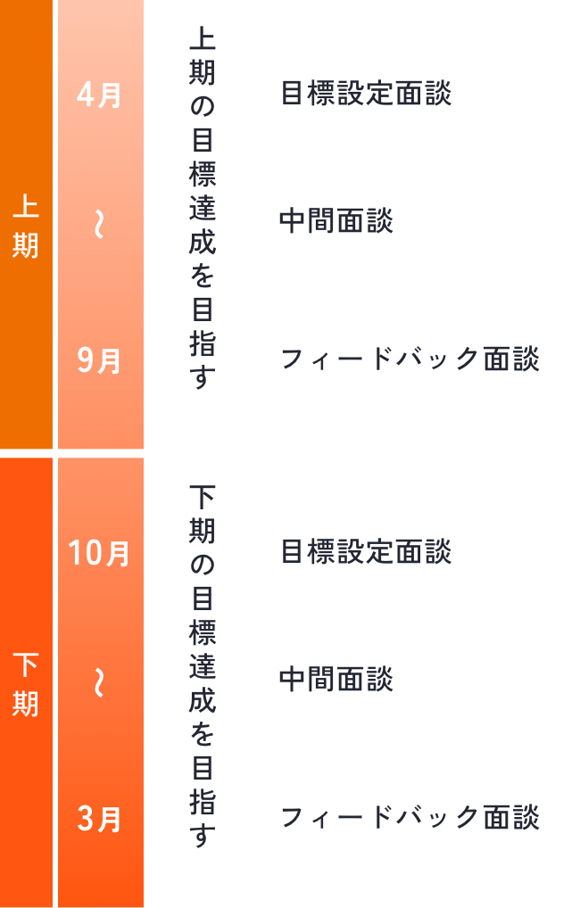 当社の評価制度では、「社員の成長」と「組織成果の最大化」をめざしています。